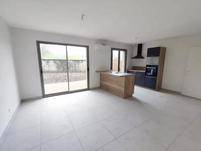 Maison de ville de type 4 en duplex avec rez-de-jardin paysagé et clos comprenant un hall d'entrée avec placards - un séjour avec une cuisine équipée (Plaque induction - Four - Hotte) - un WC avec lave-mains. A l'étage trois chambres avec placards aménagés - une salle de bains - un WC. Un garage - une buanderie et une place de parking privative complètent le bien. Chauffage pompe à chaleur (climatisation réversible) en bas et radiateurs électriques à l'étage - cumulus thermodynamique - Classe énergie A