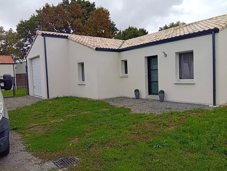 MAISON NEUVE DE 2023 DE PLAIN-PIED Entrée sur pièce de vie avec cuisine aménagée et équipée et accès à une grande terrasse, un dégagement offrant trois chambres avec placards, une salle d'eau, WC indépendant. Un grand garage avec bagagerie attenant à la maison. A l'extérieur un abri, portail électrique et jardin.