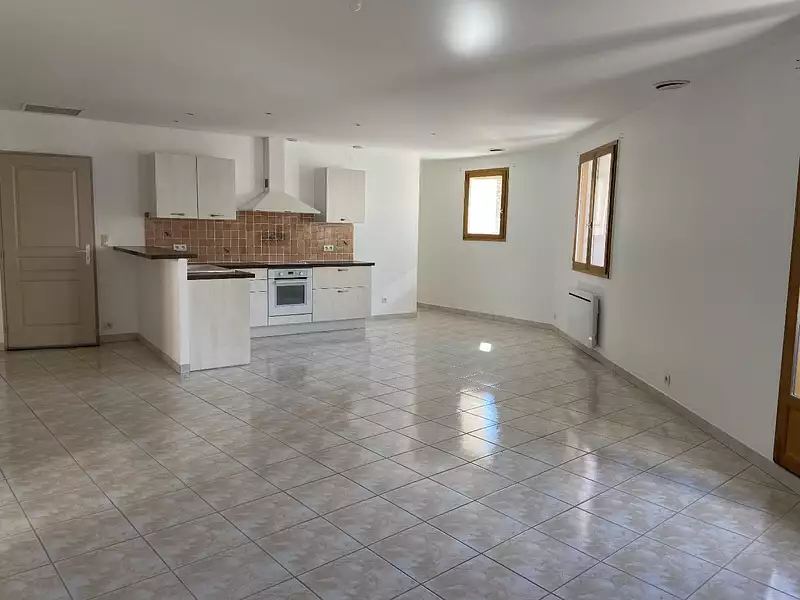 Proche du centre du village, maison de village de 86 m² avec garage Cette maison se compose en rez de chaussée un grand garage de 80 m² et une buanderie avec rangement et branchement de machine à laver. A l'étage, il y a une grande pièce à vivre lumineuse de 48 m² avec cuisine ouverte, deux chambres, une salle d'eau et un WC indépendant. La maison est équipée d'une climatisation gainable réversible Cette maison est disponible de suite.