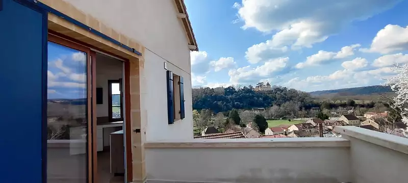 Entrée sur un dégagement, pièce principale de + 36 M² avec coin cuisine équipée, une terrasse avec vue de 22 m², 2 belles chambres de 14, 30 et 14.40 m², une salle de bains complète avec bain et douche italienne communicante aux 2 chambres, wc, cellier, chaufferie chauffage pompe à chaleur air eau au sol et chauffe-eau thermodynamique (prévoir entretien annuel).