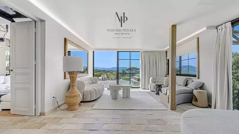 A l’entrée du célèbre village de Saint Tropez, emplacement exceptionnel, vue mer panoramique , surplombant la plage de la Bouillabaisse et le Cheval Blanc, cette villa authentique,nichée au coeur d'une pinède, en haut de la colline sera votre lieu de vie pour un séjour inoubliable. Accès facile et rapide pour le village et les plages de Pampelonne.