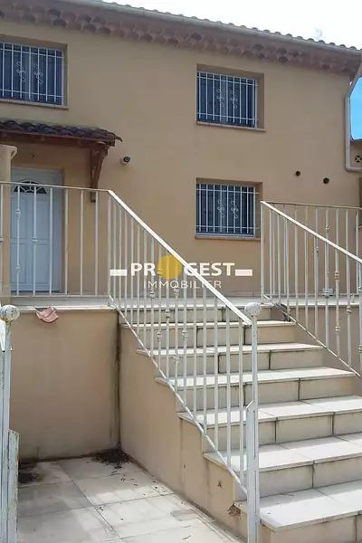 LA DESTROUSSE: Trés jolie maison mitoyenne récente T4 de 90m² avec terrasse, cave, composée d'un séjour, cuisine aménagée et équipée, grand placard, toilettes, à l'étage: 3 chambres, salle d'eau avec toilettes, au calme, à saisir.