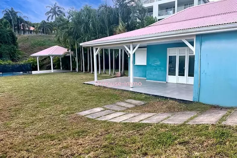 À l’extérieur, vous profiterez d’un terrain plat et entièrement clôturé d’environ 950 m², avec un jardin arboré. Une piscine type bac à punch permet de se rafraîchir facilement, et un carbet offre un bel espace pour recevoir ou se détendre.
