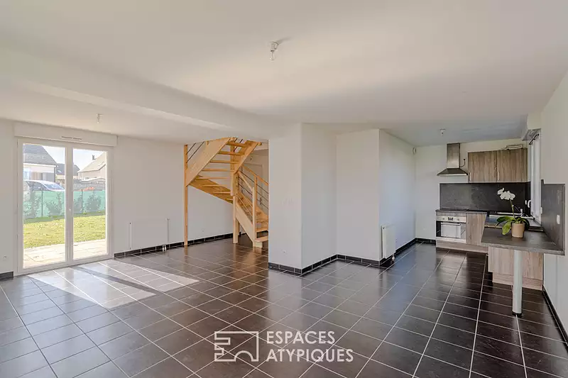 A seulement 15 minutes du centre-ville de Caen, dans un bourg avec commerces, écoles et crèche, cette maison récente offre le cadre de vie parfait pour toute la famille. Une entrée permet l'accès au séjour-salon de 30m² orienté sud-ouest. Une cuisine aménagée et équipée complète cette pièce principale. Au même niveau, la maison dispose d'une salle d'eau avec douche et wc. A l'étage, un palier dessert trois belles chambres, des wc et une salle de bains. Un garage attenant à la maison dispose d'un point d'eau et d'un autre accès direct aux extérieurs. Le tout sur un terrain de 470m². Chauffage et eau chaude par pompe à chaleur. Menuiseries double vitrage et volets électriques. Disponible de suite. CLASSE ENERGIE : B / CLASSE CLIMAT : A Montant moyen estimé des dépenses annuelles d'énergie pour un usage standard, établi à partir des prix de l'énergie au 1er janvier 2021 : entre 490 euros et 710 euros. Les informations sur les risques auxquels ce bien est exposé sont disponibles sur le site Géorisques : www.georisques.gouv.fr. Contact : Claudia GENS 07.63.85.12.90