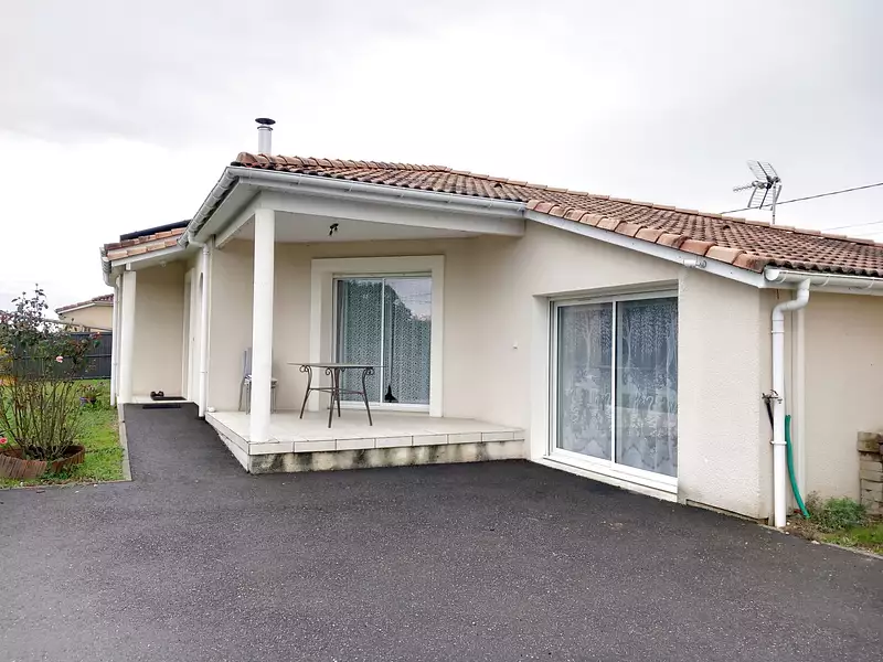 MARMANDE, proximité immédiate centre ville et grandes surfaces, belle maison de plain-pied avec terrasses couvertes et agréable jardin clos (portail motorisé), comprenant : séjour ouvert sur cuisine semi-équipée, grand cellier-buanderie/arrière cuisine, dégagement, trois chambres (deux avec placards), salle de bains + douche, wc, double garage séparé. Disponible - Chauffage par climatisation réversible, poêle à bois et convecteurs électriques - Double vitrage, volets roulants électriques - Loyer mensuel hors charges : 950€ - Dépôt de garantie : 950€