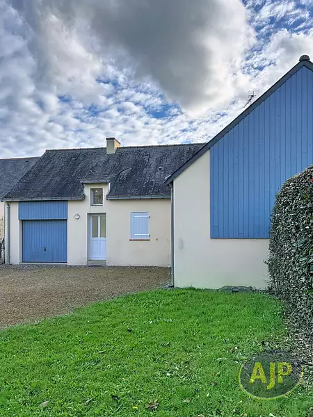 Proche bourg, au calme, maison mitoyenne d'un seul côté comprenant un grand salon-séjour avec un coin cuisine , un dégagement desservant une salle de bains, un WC et une chambre avec placard. A l'étage, une mezzanine dessert 2 chambres et un WC. Garage, terrasse carrelée, le tout sur terrain clos de 556 m². Libre dès que possible. Surface habitable : 93.40 m². CLASSE ENERGIE : C Réf 9833HH Loyer : 766 euros par mois, charges comprises. Charges loc. : 10 euros/mois (régularisation annuelle). DG : 756 euros - Honoraires locataire : 560.40 euros TTC dont EDL 186.80 euros