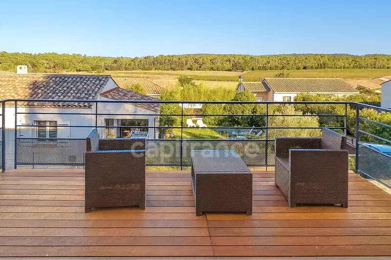 Au calme d'un fond de rue, cette maison achevée en 2025 et entièrement climatisée, avec trois chambres, a tout pour plaire. Elle dispose de deux terrasses de 62 m² et 10 m², et d'un très grand garage à tout faire de 85 m², avec en plus un porche de stationnement pour deux voitures.