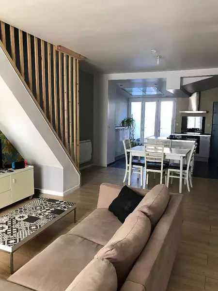 maison de type 1930 composée au RDC d'une entrée desservant séjour, cuisine ouverte aménagée et semi-équipée, cellier, wc. au étages un palier desservant une bureau ou chambre d'enfant (7m²) , 3 chambres, une salle de bain. une cour disponible au 01/12/2025. condition d'éligibilité : couple salarié en CDI avec ou sans enfants revenu minimum du foyer : 3 250 euros net mensuel.