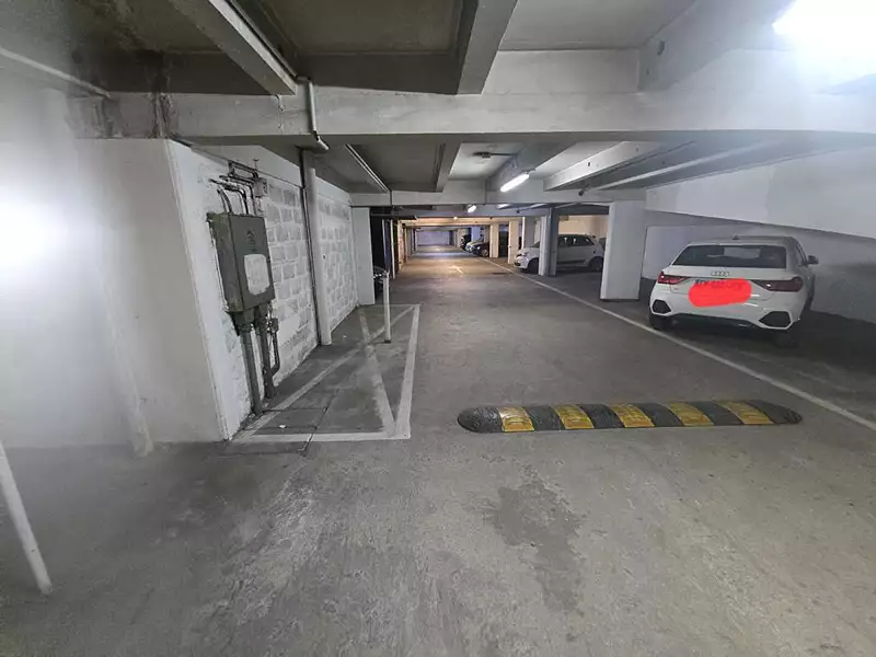 Garage libre fermé dans résidence très sécurisé avec lumière.