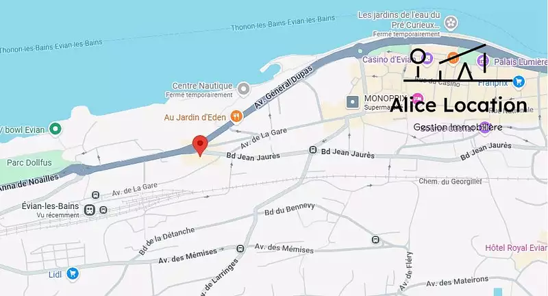 Emplacement de choix, accès à la gare par un portillon exterieur à moins de 300 mètres et à 1.1km de l'embaracdère d'Evian.
