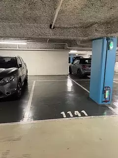 Grand emplacement de stationnement de voiture dans un parking sécurisé, au niveau -2.
