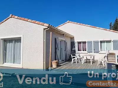 iad France - Aurore Collette vous propose: *** VILLA PLAIN PIED 106m² - JARDIN 423m² - PISCINE 7x3 - 3 CHAMBRES DONT 1 SUITE PARENTALE - 2 WC - 2 SALLES D'EAU - GARAGE CARRELE/ISOLE -...