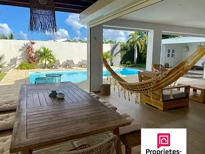 Cathy Lacourbas vous présente une Villa d'exception face aux îlets Pigeon. Vue mer panoramique en Guadeloupe. Nichée au coeur d'un somptueux jardin paysager de 1400m², cette propriété...