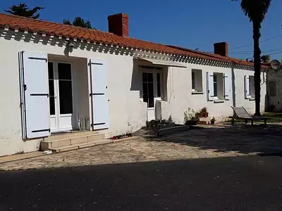 A la sortie de LONGEVILLE SUR MER, belle maison de 120 m2 habitables, avec 4 chambres. Entrée sur le salon- séjour (cheminée avec insert), de 31 m2, prolongé par une véranda chauffée 25...