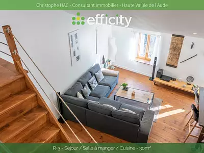 RENNES-LES-BAINS – MAISON DE 140 M² – TERRASSE – CAVE Efficity vous propose cette maison au charme authentique, idéalement située entre les thermes et le centre du village. Mitoyenne...