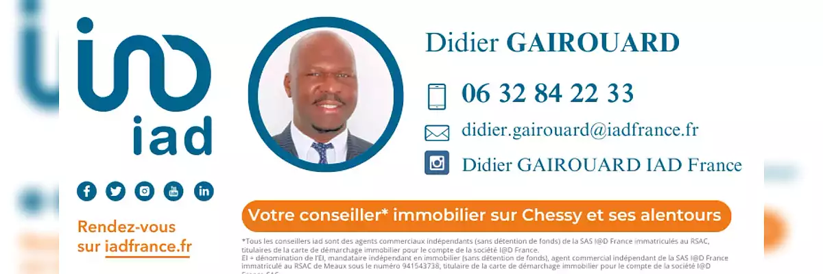 iad France vous propose des milliers de conseillers immobiliers compétents au plus près de chez vous notamment sur Chessy. Nous nous sommes engagés à respecter un cadre réglementé, ce qui augmente notre crédibilité et garantit la qualité de nos prestations.