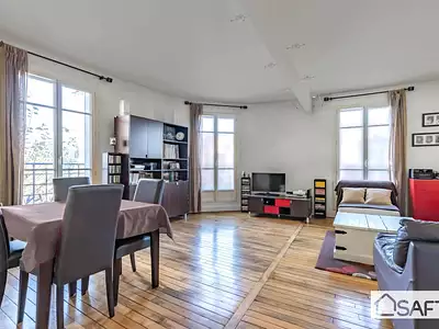 FRONT DE SEINE. VUE PANORAMIQUE EXCEPTIONNELLE SUR LA SEINE, L’ÎLE DE LA JATTE, PARIS ET LA TOUR EIFFEL. Au 7ème étage avec ascenseur d’une résidence de bon standing accessible depuis la...