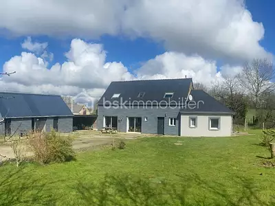 Secteur Loiron, pavillon plain pied avec une entrée, bureau, cuisine aménagée ouverte sur salon séjour pour environ 50 m². Couloir desservant 4 chambres de 10 a 13m², salle de...