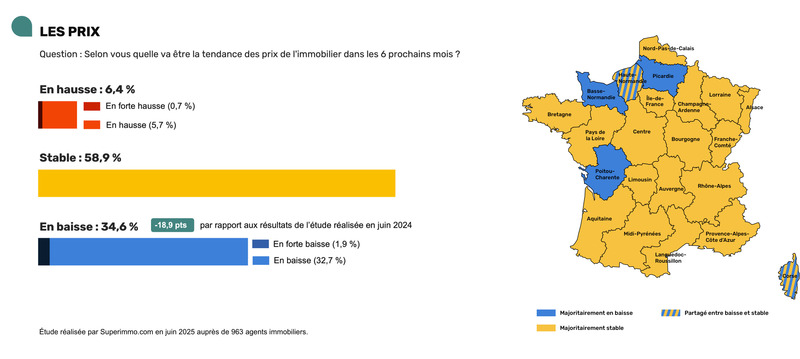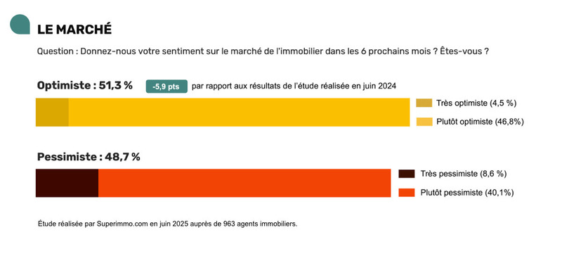 Enquête réalisée par Superimmo.com auprès de 963 agents immobiliers, interviews réalisées en ligne les 5 et 6 juin 2025.