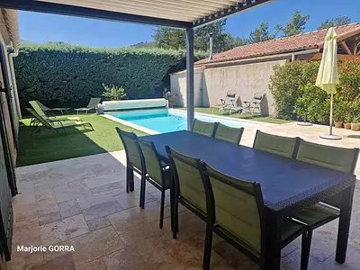 EN EXCLUSIVITE !!! Marjorie GORRA vous propose à 1 km du village, au calme, villa de plain pied de 2016 Construction "Maison de Manon" aux normes RT 2012 sous garantie décennale de 94...