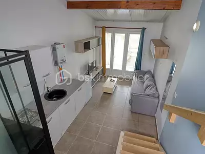 Dans un bourg avec commerces et écoles, cette maison vivable de plain pied se compose de : • Une cuisine, • Un salon/séjour, • Véranda (chauffée) • 2 chambres • Un bureau • Une salle...
