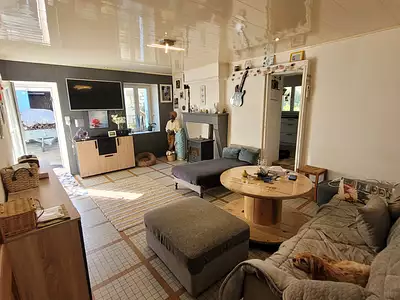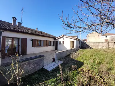 Maison de Village située entre Jonzac et Mirambeau d'une superficie habitable de 95 m2. Au rez-de-chaussée une pièce de vie avec cuisine ouverte de 29 m2, une chambre avec lavabo, un wc...