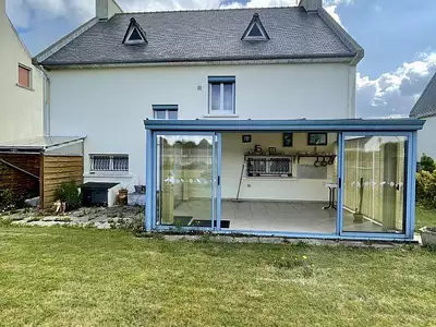 iad France - Violaine Boutin vous propose: PLOURIVO / CENTRE VILLE À PIEDS / VIE DE PLEIN PIED / CALME / TOUT PROCHE DES COMMODITES / DOUBLE GARAGE avec espace au dessus / EXTÉRIEUR...