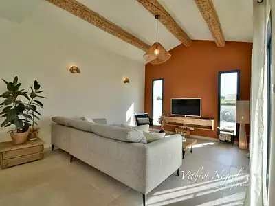 A Mouriès, village des Alpilles, Charmante maison de 100 m2 de plain-pied au calme et non loin des commodités. Vous y trouverez un vaste séjour avec cheminée et cuisine ouverte donnant...