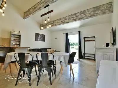 Belle maison à Mouriès Située dans un quartier calme, cette maison de 150 m2 offre tout le confort moderne. Elle comprend 4 chambres dont une au rez-de-chaussée, une grande salle de bain,...